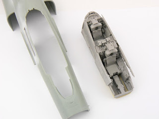 Now for the cockpit, good innit! The detail is spectacular and will benefit from careful painting. I'm still not sure weather to use the Eduard consoles, I did that with the F-100 and it worked well but I may just have a go at painting them. I'll have a think.....